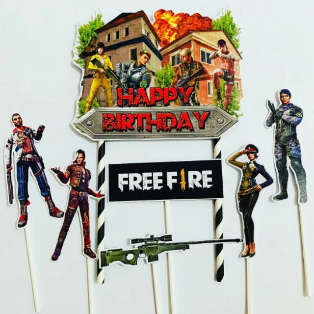 Topper Toper Hiasan Kue Cup Cake Ulang Tahun Happy Birthday Karakter Free Fire Lazada Indonesia